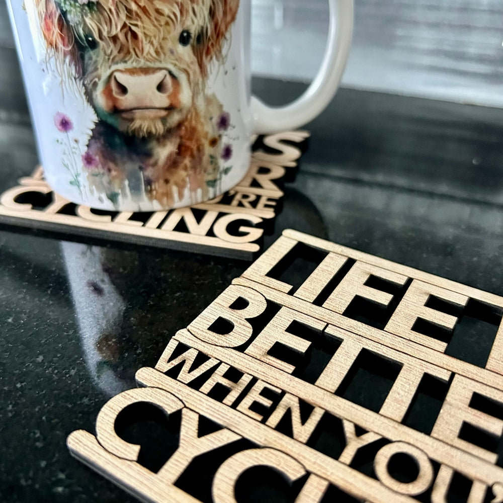 Bringen Sie Ihre Liebe zum Radsport mit diesen einzigartigen Holzuntersetzern auf den Tisch! Lasergeschnitten aus Holz und sorgfältig von Sonia entworfen. Das Radsportthema macht dieses 4er-Set nicht nur praktisch, sondern auch zu einem echten Hingucker. Perfekt für zu Hause, die Cafeteria oder als einzigartiges Geschenk für einen Radsportfan.