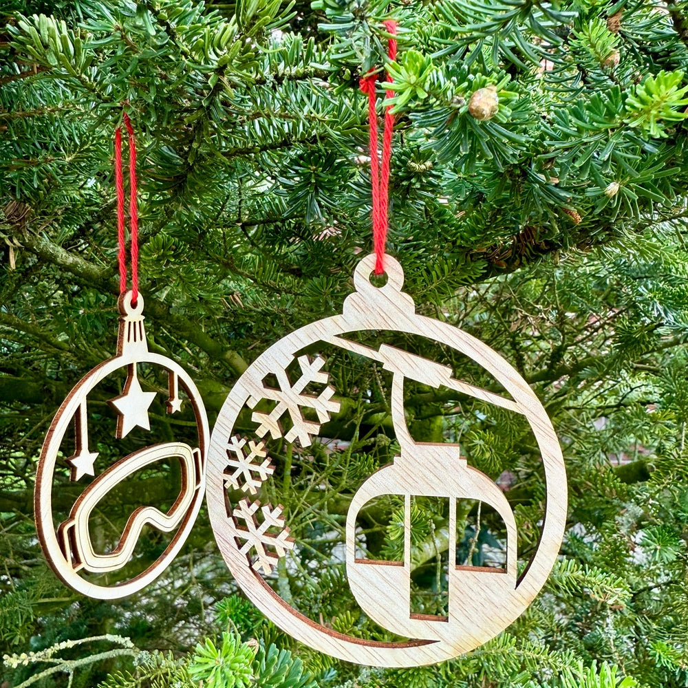 ⛷️ Verleihen Sie Ihrem Weihnachtsbaum mit diesen einzigartigen Holzkugeln einen Hauch von Wintersportzauber!