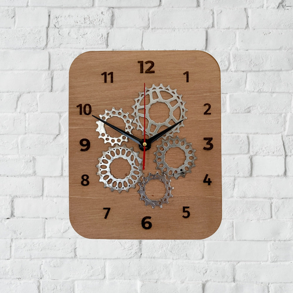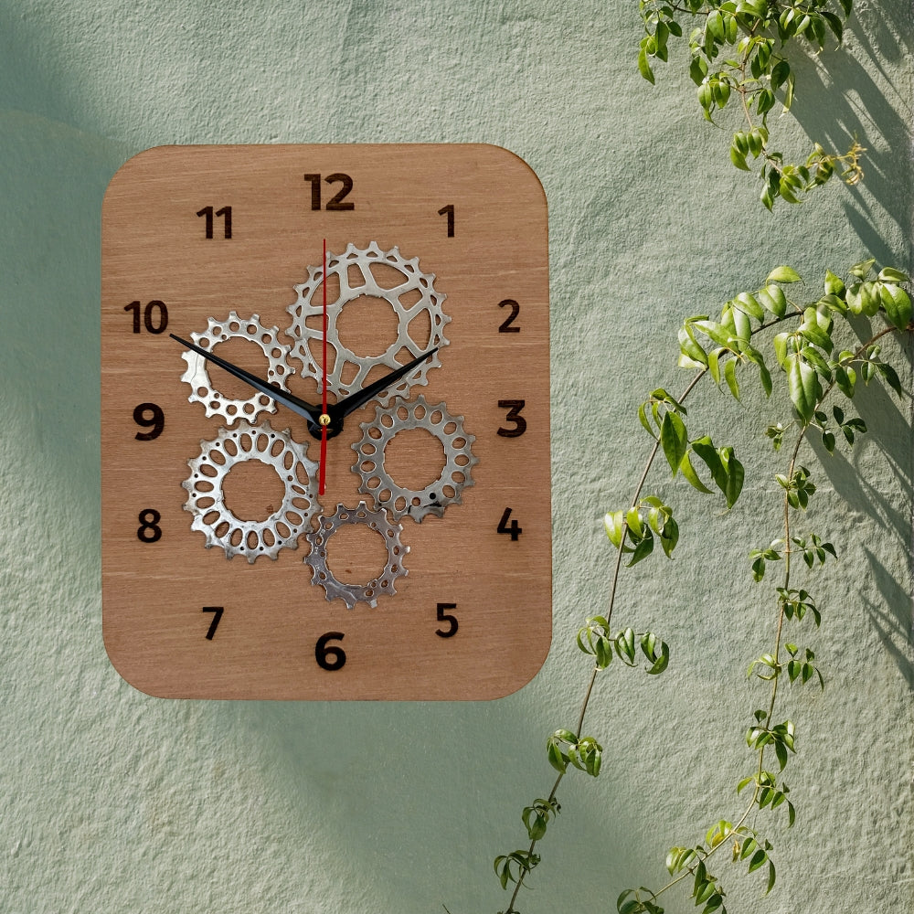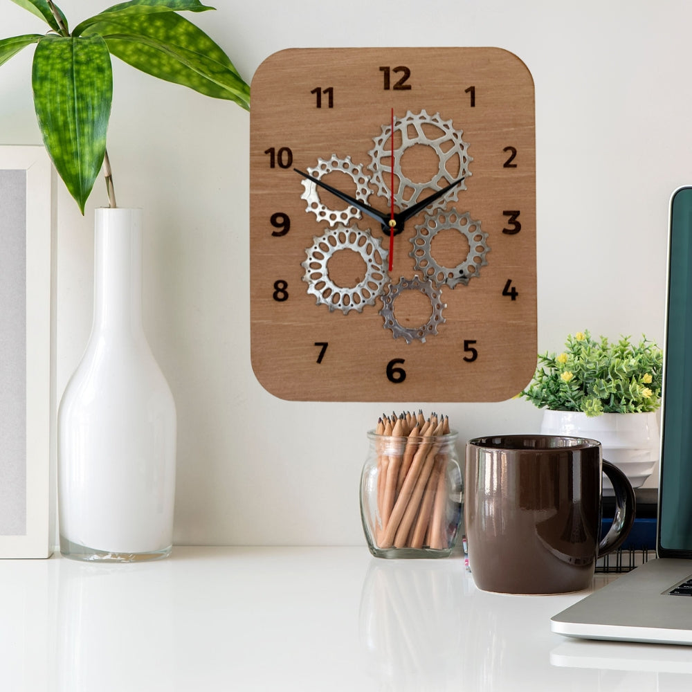 Diese einzigartige, handgefertigte Uhr ist ein echter Blickfang in jedem Interieur. Aus hochwertigem Holz gefertigt und präzise lasergeschnitten , werden die feinen Details der Zahnräder wunderschön hervorgehoben.