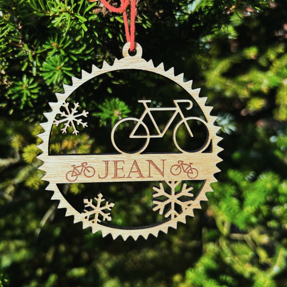 Maak je kerstboom uniek voor wielrenfans met deze lasergesneden houten kerstbal! 🌲🚴