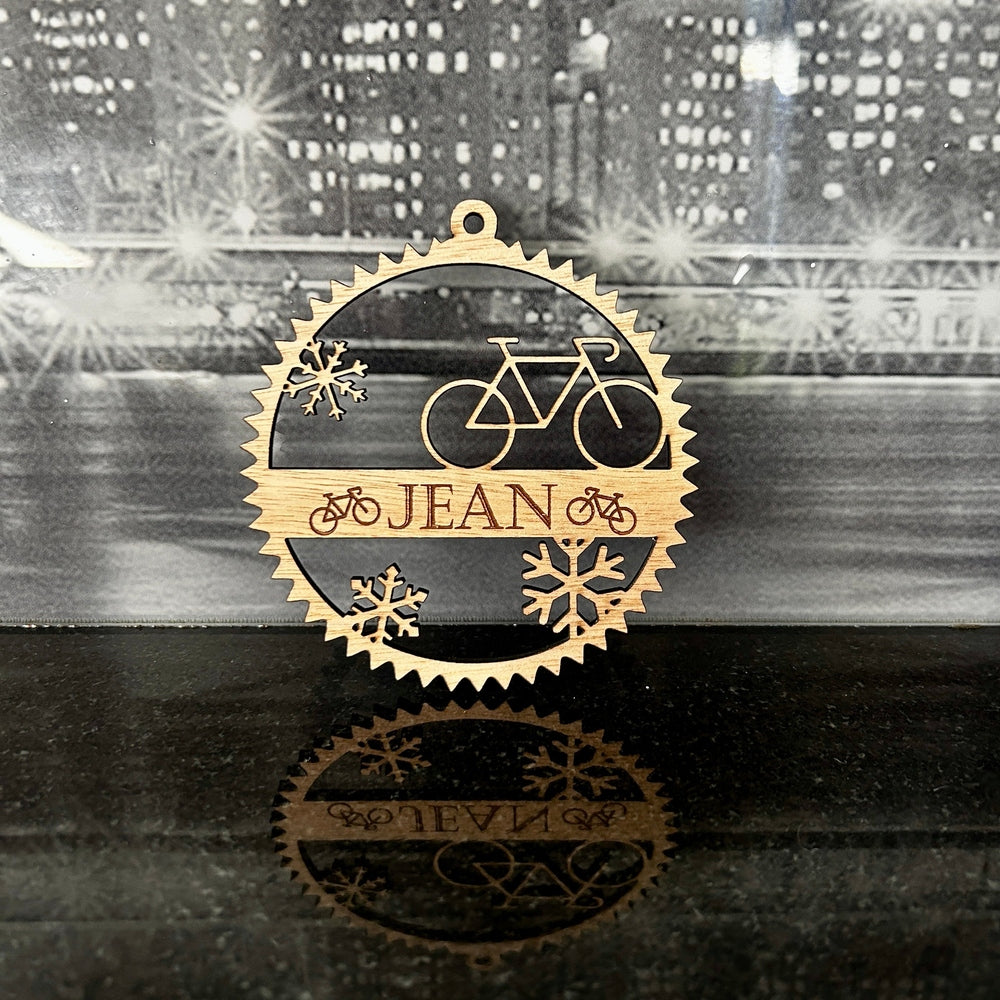 BT by Sonia Lasergesneden Houten Kerstbal – Gepersonaliseerd Wielrennen