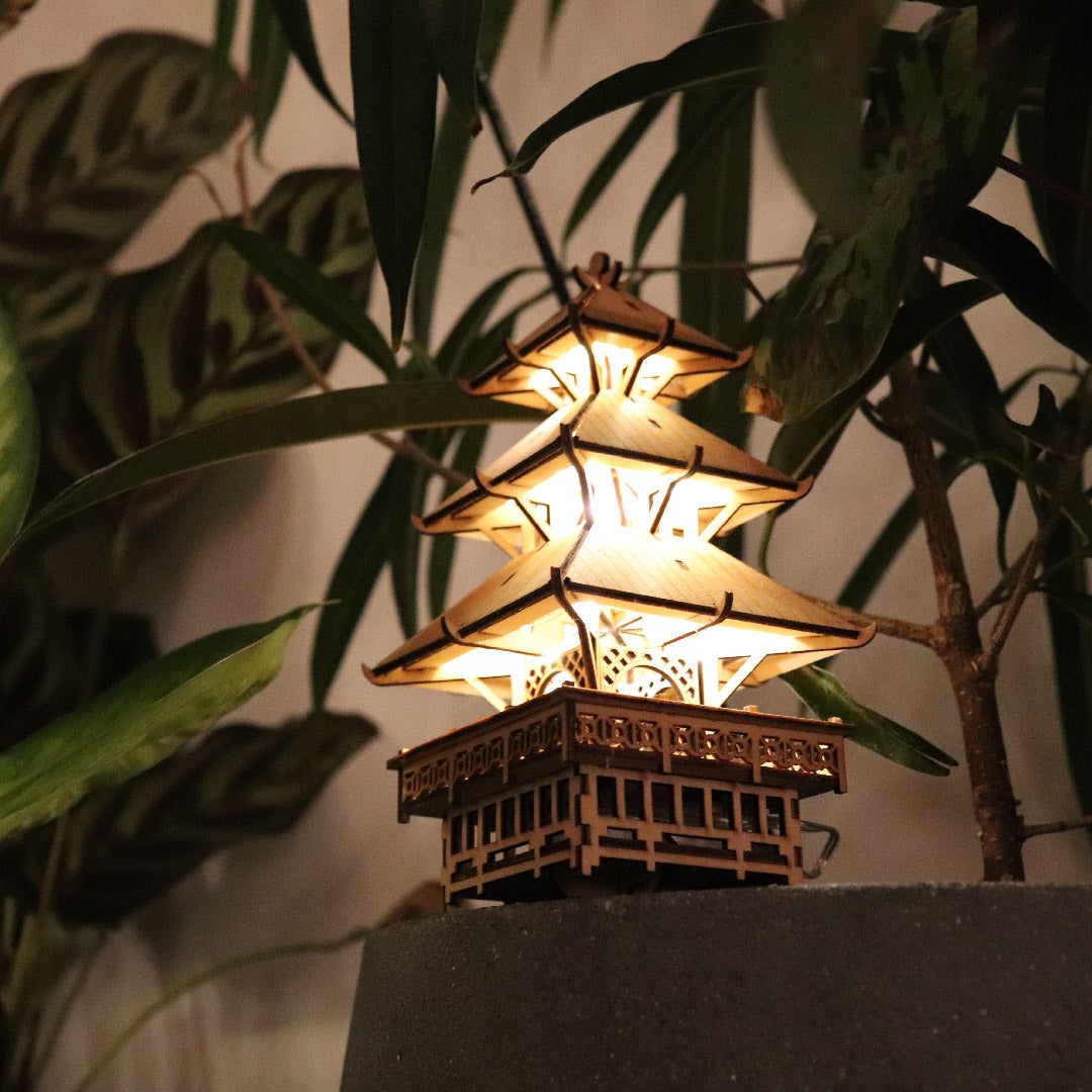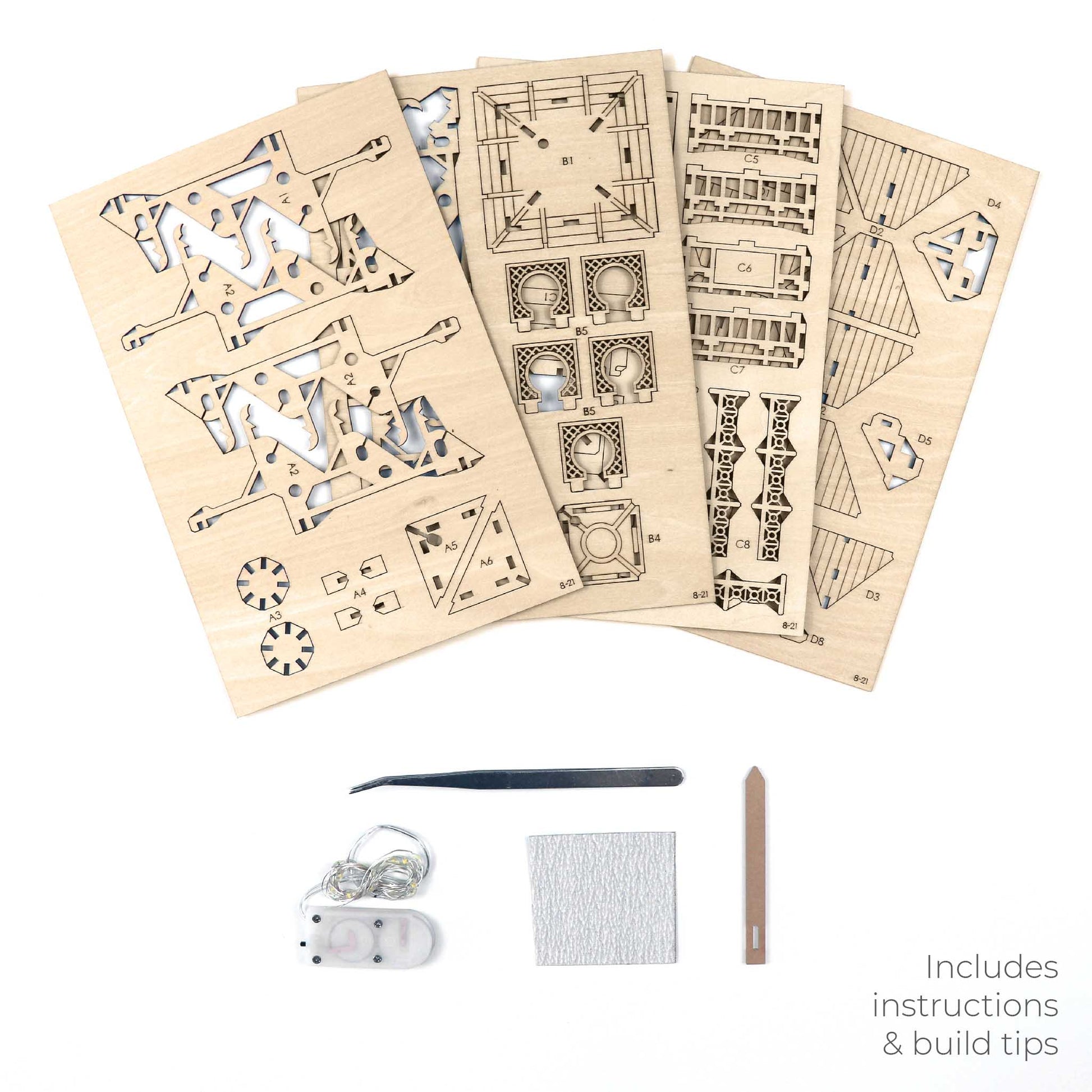 DIY-Modellbausatz aus Holz mit leicht verständlicher Anleitung. Inklusive LED-Leuchten, Acrylpfahl (feuchtigkeitsbeständig) und Montagewerkzeug.